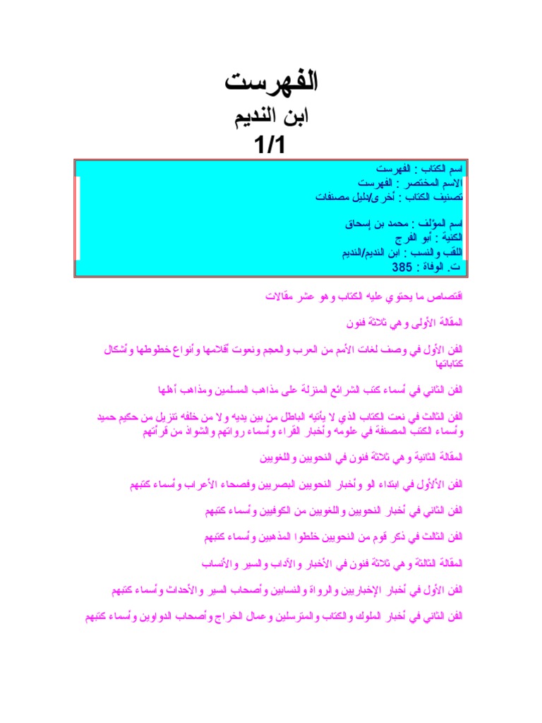 Fihrasat - Ibnu Nadim | Pdf